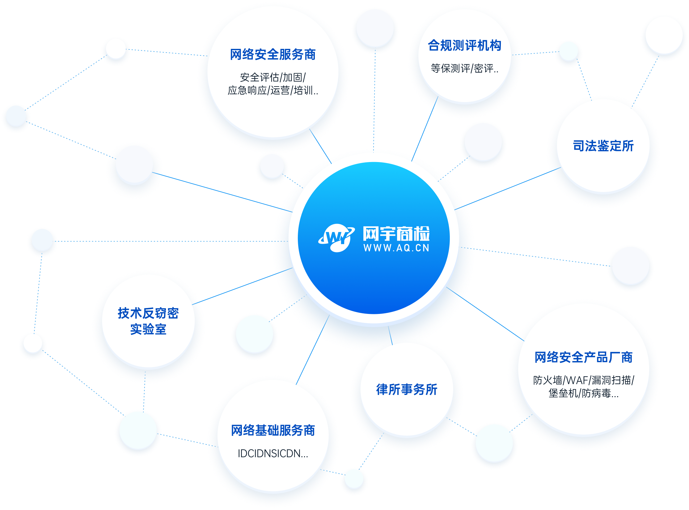 科技+法律的经营理念,丰富的合作生态,客户无需对接多机构,网宇商检一站式解决所有安全需求